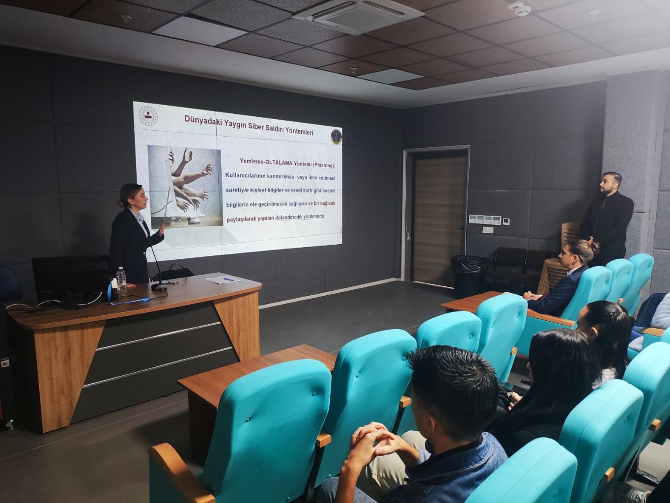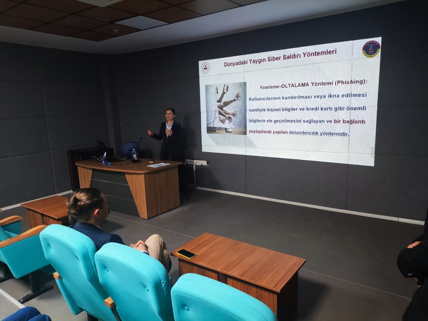 Manisa İl Jandarma Komutanlığı Siber Suçlarla Mücadele Şube Müdürlüğünce Siber Farkındalık ve Bilinçlendirme Eğitim Faaliyetleri kapsamında Manisa Celal Bayar Üniversitesi İnsan ve Toplum Bilimleri Fakültesinde öğrenci ve akademisyenlere yönelik Kişisel Bilgilerin Güvenliği, Güvenli İnternet Kullanımı, Teknoloji Bağımlılığı, Siber Zorbalık, Sosyal Medya Kullanımında Dikkat Edilecek Hususlar, Yasadışı Bahis, Oltalama Yöntemleri, İnternetteki Tehlikeler ve Dolandırıcılık konu başlıklarında bilgilendirme faaliyeti icra edilmiştir.